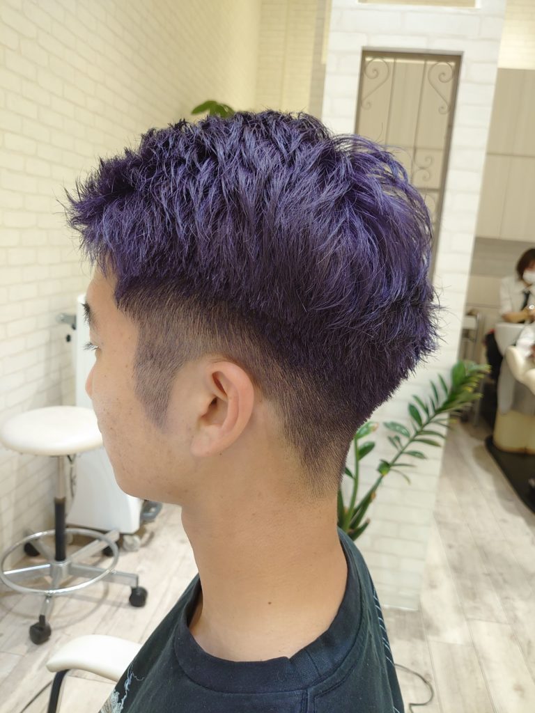 夏休み限定で大学のサッカー部の部員は髪をカラフルにして大会に挑むみたいです✨️(彼は紫担当🟣)